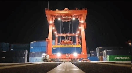 4.该智能化堆场项目中设置的扫描识别系统、防摇系统、自动运行系统等,作为轨道集装箱门式起重机的远程自动化子系统,实现集卡侧到箱区侧的一键自动运行。