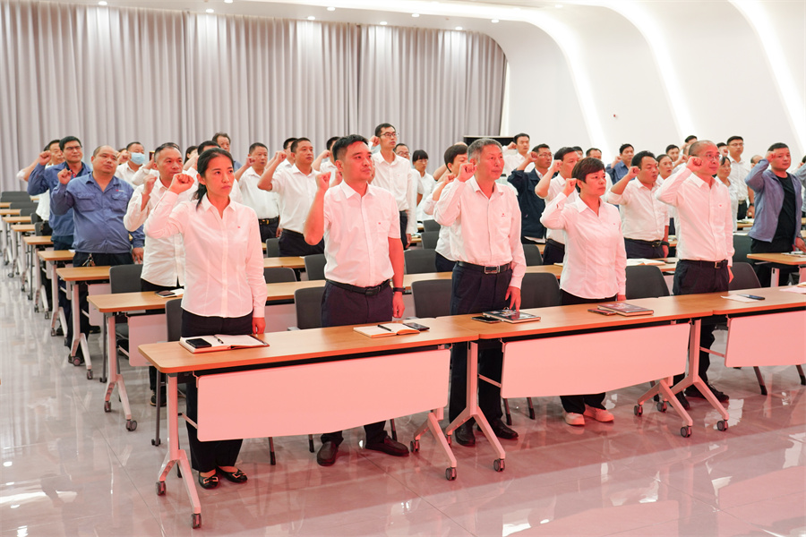 参会人员在钮鹏超的带领下完成质量承诺宣誓,他们用铿锵有力的誓词对产品质量和服务品质作出了庄严承诺,彰显了公司全体员工为广大客户提供优质产品的坚定决心。