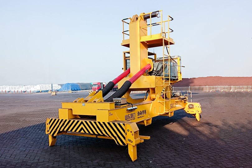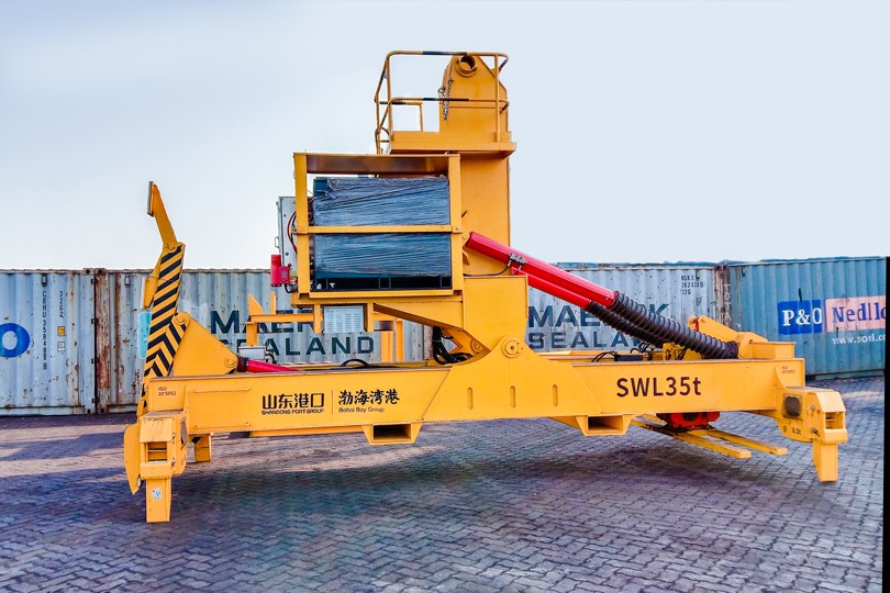 奋进潍坊港!bb贝博Ballbet倾翻式集装箱吊具顺利交付国内首个“零碳港 口”